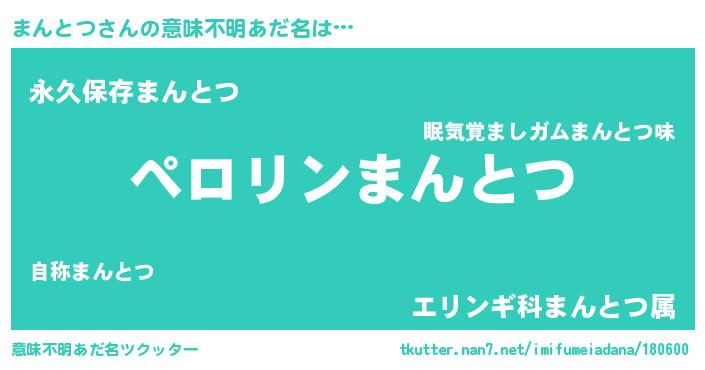 | 欧米人風あだ名 | 『アンジェラ・まんとつ』 |