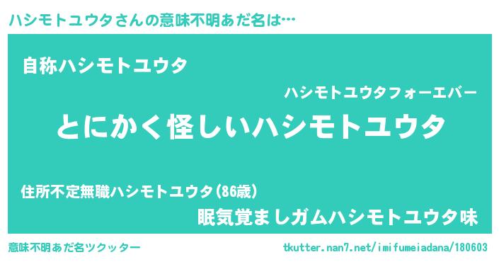| 男性向けラノベタイトル風あだ名 | 『ハシモトユウタの嫁は女の子じゃないと思った?』 |