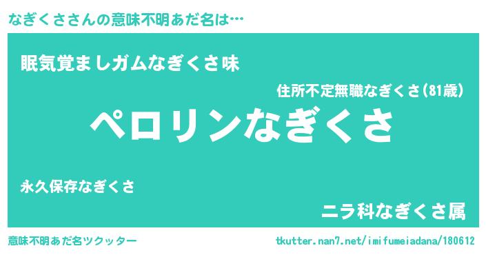 | ヒーロー風カッコイイあだ名 | 『スーパーナギクサ』『愛の使者なぎくさ』 |