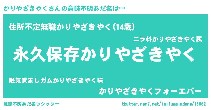 | 胡散臭い通販商品みたいなあだ名 | 『絶対に幸福をもたらす健康食品…その名も「かりやざきやく」』 |