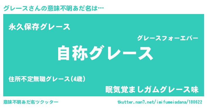 | 男性向けラノベタイトル風あだ名 | 『グレースに滅ぼされるだけの簡単なお仕事です』 |