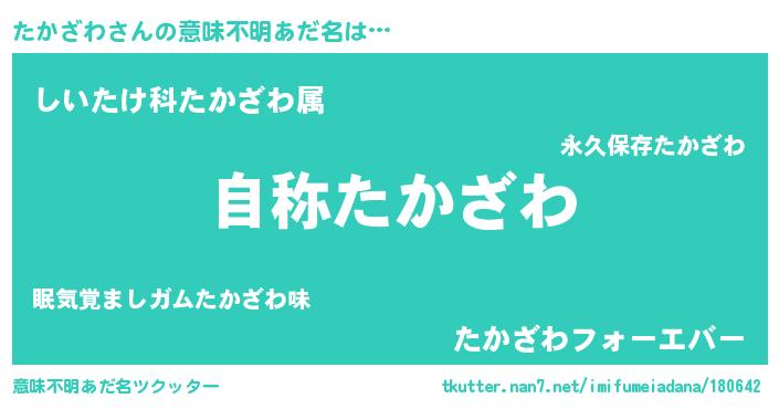 | 男性向けラノベタイトル風あだ名 | 『Re:たかざわから始める異世界生活』 |