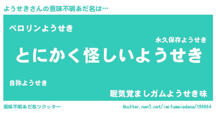 | 女子向けラノベタイトル風あだ名 | 『ようせきは平凡を望む』 |