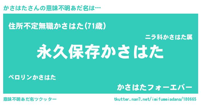 | 胡散臭い通販商品みたいなあだ名 | 『来世でも幸せになれる水素水…その名も「かさはた」』 |