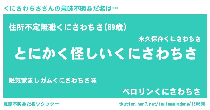 | 男性向けラノベタイトル風あだ名 | 『くにさわちさに滅ぼされるだけの簡単なお仕事です』 |