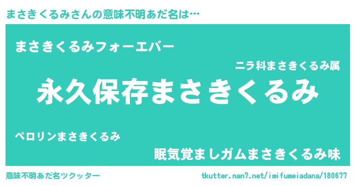 | 胡散臭い通販商品みたいなあだ名 | 『来世でも幸せになれる水素水…その名も「まさきくるみ」』 |