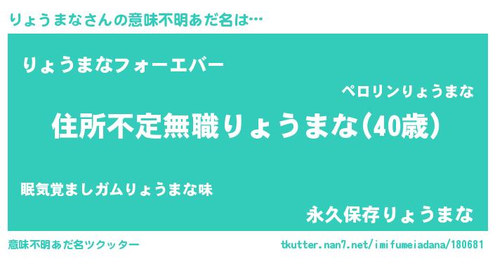 | 欧米人風あだ名 | 『りょうまな・ステッグマイヤー』 |
