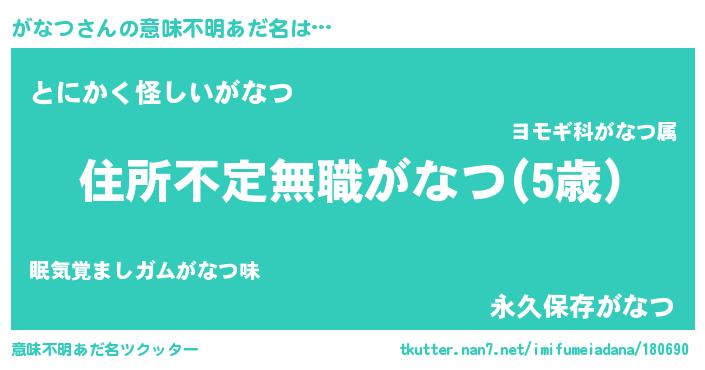 | ポケモン風あだ名 | 『ガーナイ』『ヒガナツ』『ゼニガナ』 |