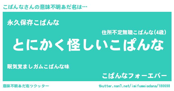 | 男性向けラノベタイトル風あだ名 | 『ダンジョンにこぱんなを求めるのは間違っているだろうか』 |