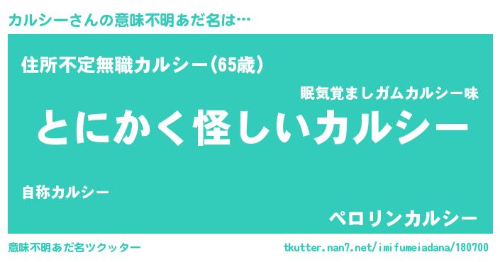 | 女子向けラノベタイトル風あだ名 | 『カルシー様がみてる』 |