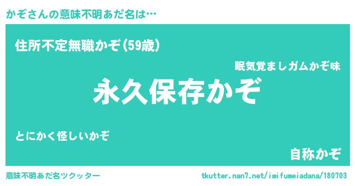 | 胡散臭い通販商品みたいなあだ名 | 『絶対に幸福をもたらす健康食品…その名も「かぞ」』 |