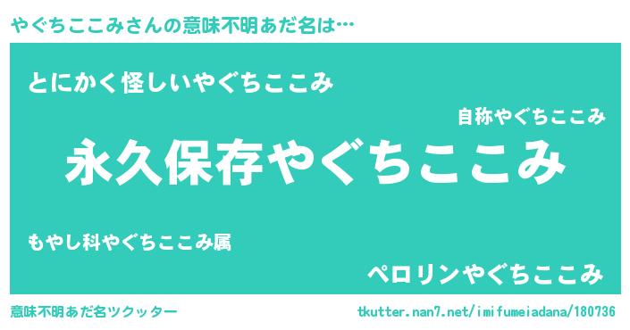 | 胡散臭い通販商品みたいなあだ名 | 『来世でも幸せになれる健康食品…その名も「やぐちここみ」』 |
