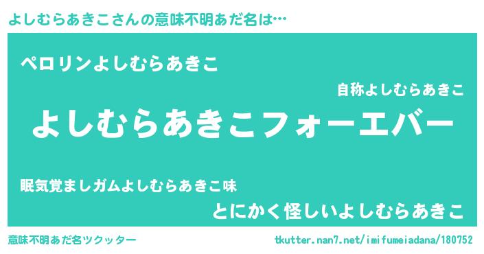 | 肩書あだ名 | 『よしむらあきこ総理大臣』 |