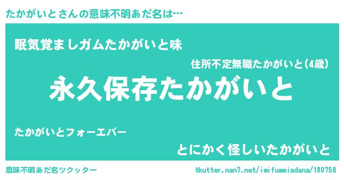 | ヘコむあだ名 | 『たかがいと(苦笑)』『たかを』 |