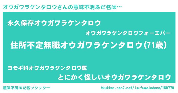 | 欧米人風あだ名 | 『ダレノガレオウガワラケンタロウ』 |