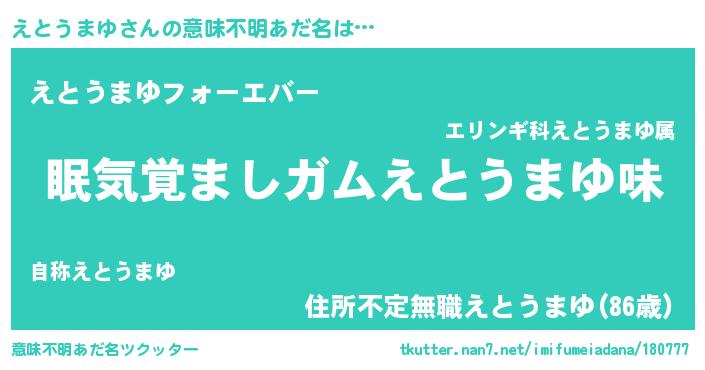 | 欧米人風あだ名 | 『ダニエルえとうまゆ』 |
