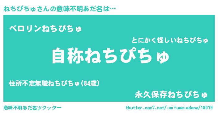 | 欧米人風あだ名 | 『ケンブリッジねちぴちゅ』 |
