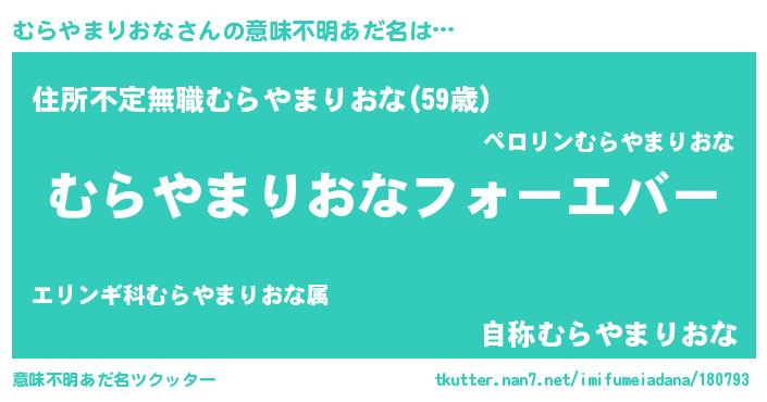 | 欧米人風あだ名 | 『むらやまりおな・ステッグマイヤー』 |