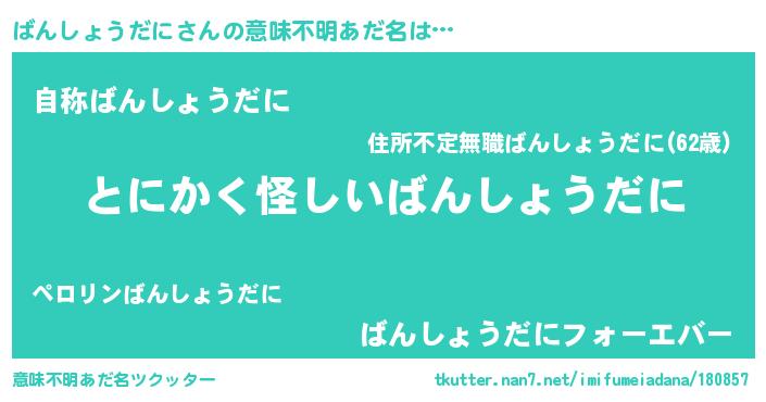 | 女子向けラノベタイトル風あだ名 | 『ばんしょうだに様がみてる』 |
