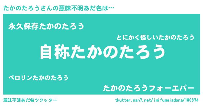 | 女子向けラノベタイトル風あだ名 | 『たかのたろうなんてお断りですっ。』 |