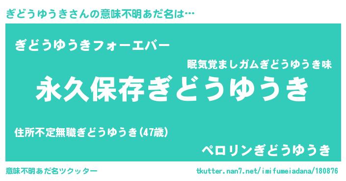 | ヒーロー風カッコイイあだ名 | 『ネオギドウユウキ』『仮面ギドダー』 |