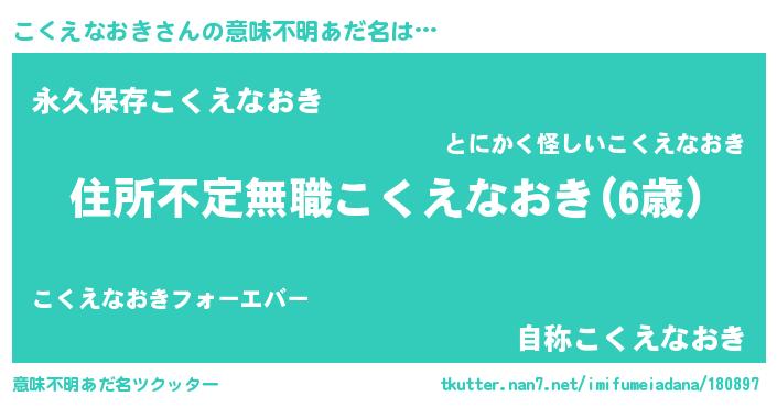 | 男性向けラノベタイトル風あだ名 | 『この素晴らしい世界にこくえなおきを!』 |