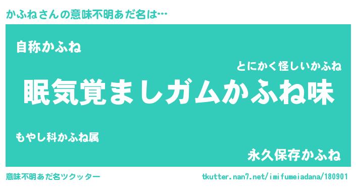 | ヒーロー風カッコイイあだ名 | 『慈愛の使者かふね』『超時空戦士カフネ』 |
