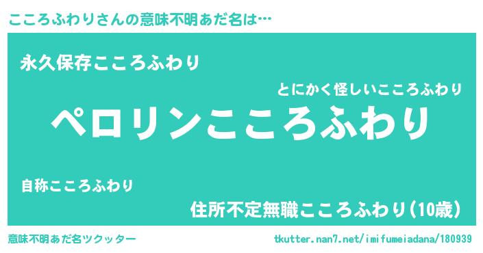 | ヘコむあだ名 | 『ここっふぃ~』『こころふわり(笑)』 |