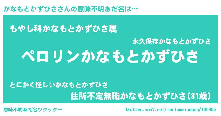 | 胡散臭い通販商品みたいなあだ名 | 『必ず成功する水晶球…その名も「かなもとかずひさ」』 |