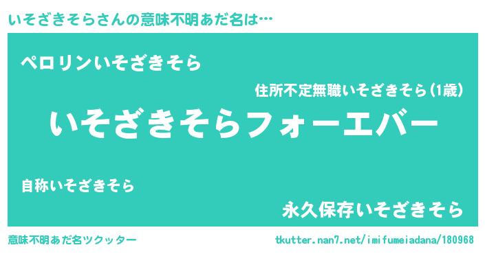 | 男性向けラノベタイトル風あだ名 | 『やはりいそざきそらの青春ラブコメはまちがっている 』 |