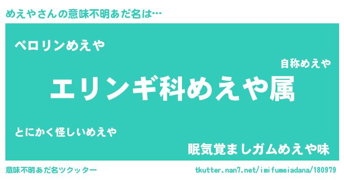 | ヘコむあだ名 | 『めえにゅー』『めえっぺ』 |