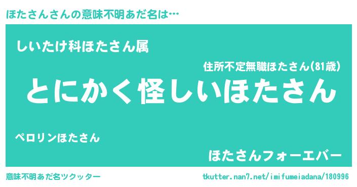 | ヒーロー風カッコイイあだ名 | 『暗黒騎士ホタ』『ウルトラほたさんマン』 |