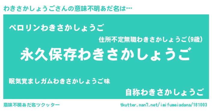 | 男性向けラノベタイトル風あだ名 | 『わきさかしょうごという概念が存在しない退屈な世界 』 |