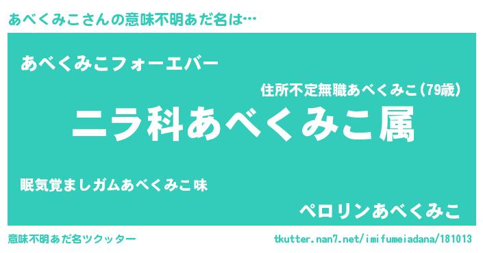| 欧米人風あだ名 | 『アンジェラ・あべくみこ』 |