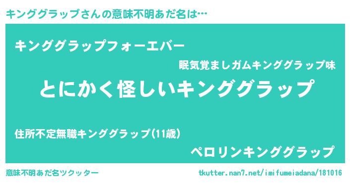 | 男性向けラノベタイトル風あだ名 | 『キンググラップの嫁は女の子じゃないと思った?』 |