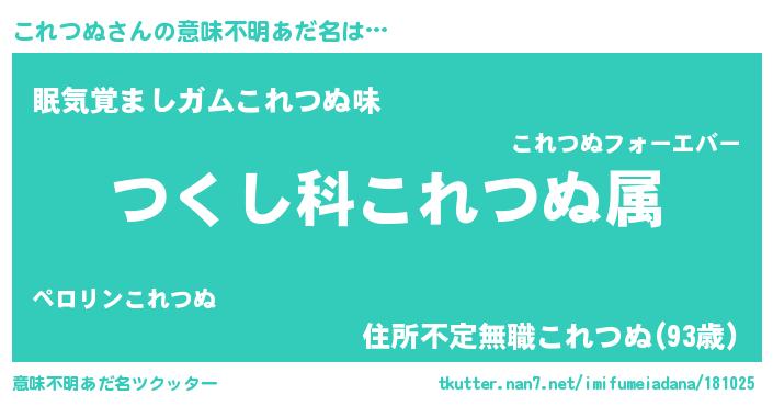 | 男性向けラノベタイトル風あだ名 | 『うちのこれつぬが世界を掌握している!』 |