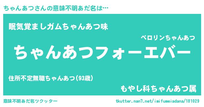 | 肩書あだ名 | 『ちゃんあつ総理大臣』『ちゃんあつ大尉』 |