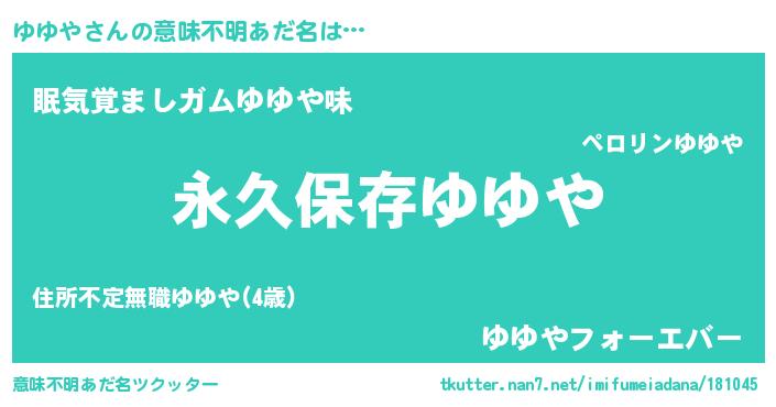 | 男性向けラノベタイトル風あだ名 | 『ゆゆやという概念が存在しない退屈な世界 』 |
