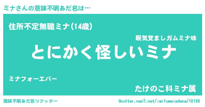 | 女子向けラノベタイトル風あだ名 | 『ミナ様がみてる』『首の姫と首なしミナ』 |
