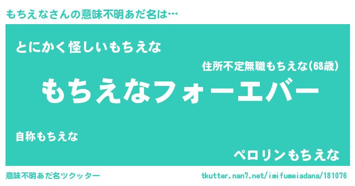| ヒーロー風カッコイイあだ名 | 『ウルトラもちえなマン』『暗黒騎士モチ』 |