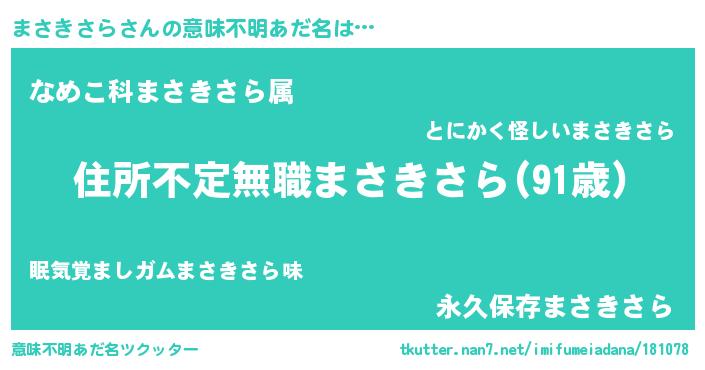 | 男性向けラノベタイトル風あだ名 | 『この素晴らしい世界にまさきさらを!』 |