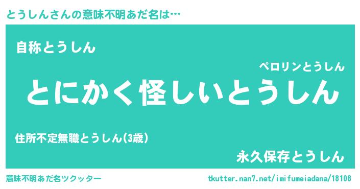 | 男性向けラノベタイトル風あだ名 | 『とうしんの嫁は女の子じゃないと思った?』 |