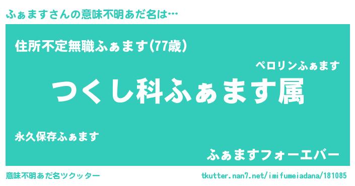 | 男性向けラノベタイトル風あだ名 | 『ふぁます~年齢イコール彼女いない歴の魔法使い~』 |