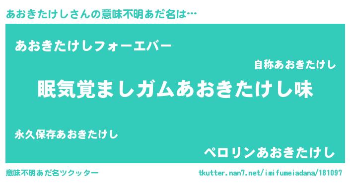| 男性向けラノベタイトル風あだ名 | 『おまえをオタクにしてやるから、俺をあおきたけしにしてくれ! 』 |