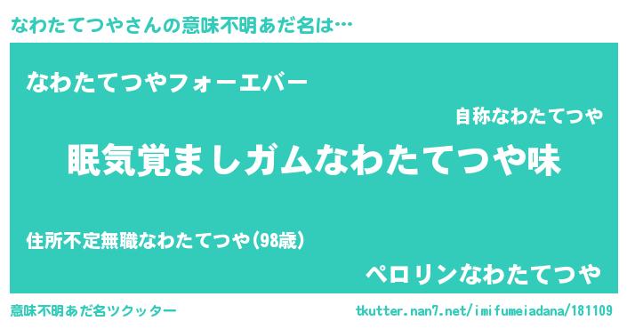 | 男性向けラノベタイトル風あだ名 | 『ノーゲーム・ノーナワタテツヤ』 |