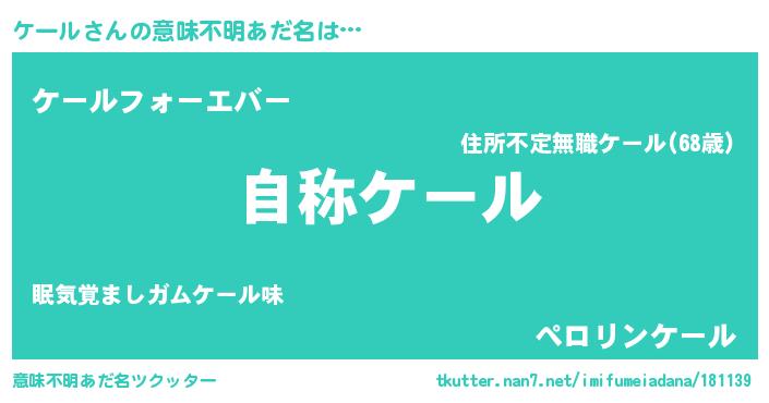 | 女子向けラノベタイトル風あだ名 | 『ケールなんてお断りですっ。』 |