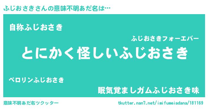 | 男性向けラノベタイトル風あだ名 | 『ダンジョンにふじおさきを求めるのは間違っているだろうか』 |