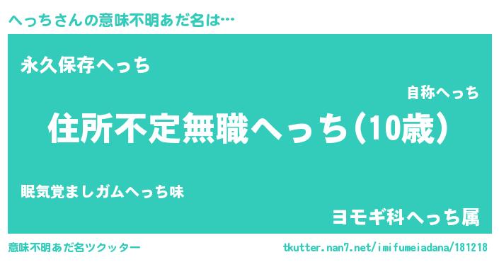 | ヘコむあだ名 | 『へっち(笑)』『へっお』『なまこ酢』 |