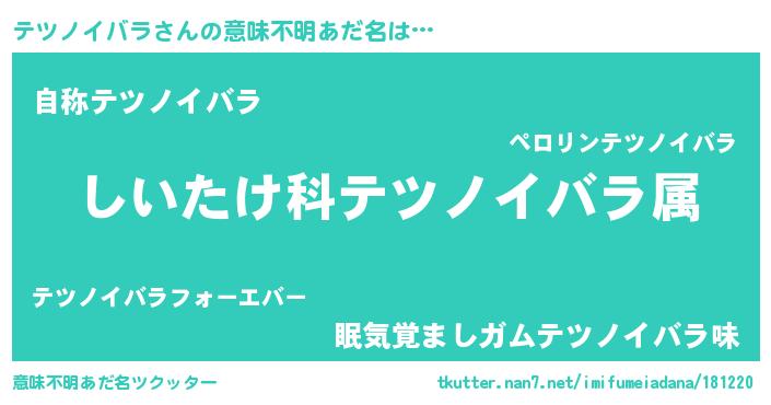 | 男性向けラノベタイトル風あだ名 | 『テツノイバラスレイヤー』 |