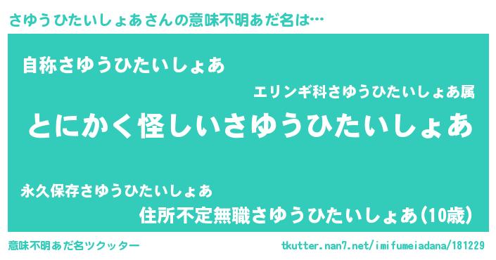| 男性向けラノベタイトル風あだ名 | 『うちのさゆうひたいしょあが世界を掌握している!』 |